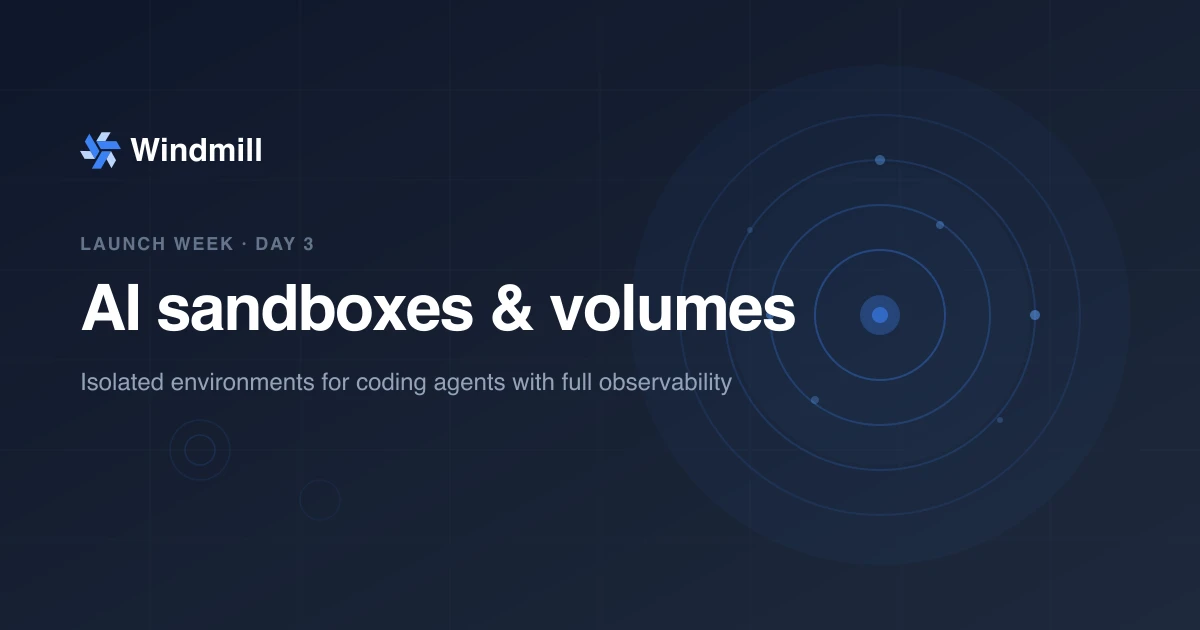 Introducing AI sandboxes: run Claude Code, Codex, or custom agents in isolated environments with persistent volumes on Windmill.